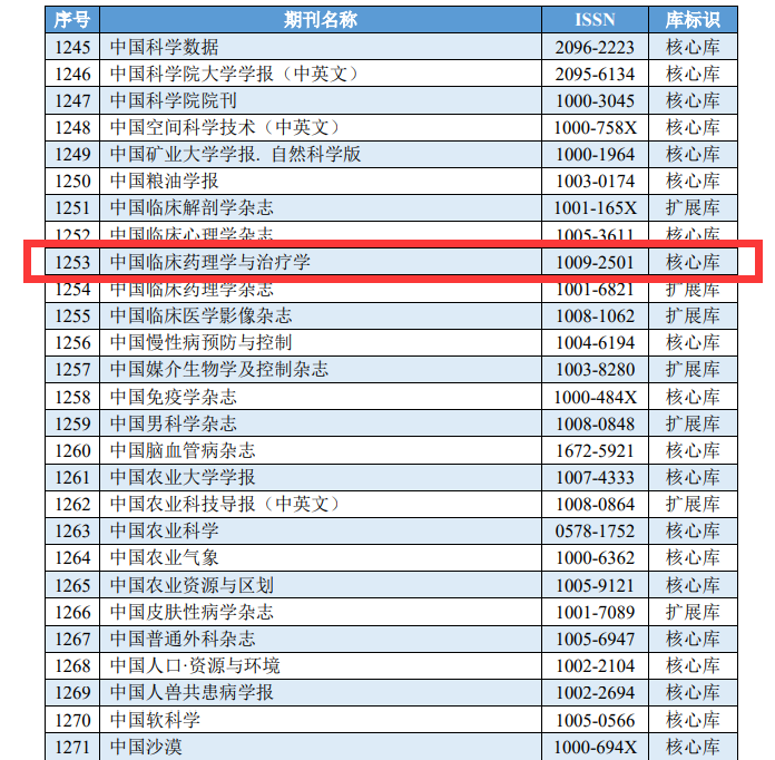 近日,中国科学院文献情报中心发布中国科学引文数据库(Chinese Science Citation Database,简称CSCD)2025—2026年度来源期刊遴选结果,《中国临床药理学与治疗学》继续入选CSCD来源期刊(核心库)。此次入选标志着本刊在药理学与治疗学领域的学术水准、文献质量及学科影响力获持续肯定。